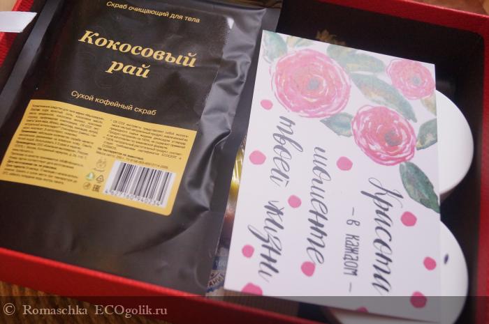 Под букетом меня ждала открытка и скраб Кокосовый рай от бренда Мыловаров. Скраб я уже затестила и он крутой! Прям 🔥: мягкий и ароматный!