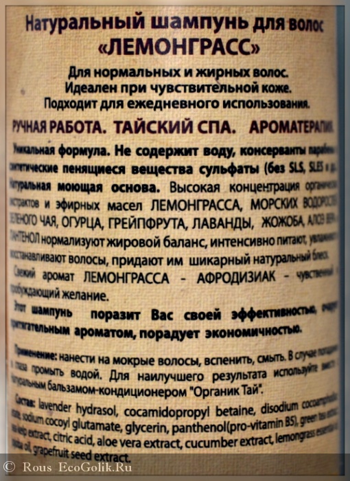 Rous: Натуральный шампунь "Лемонграсс" Organic Tai