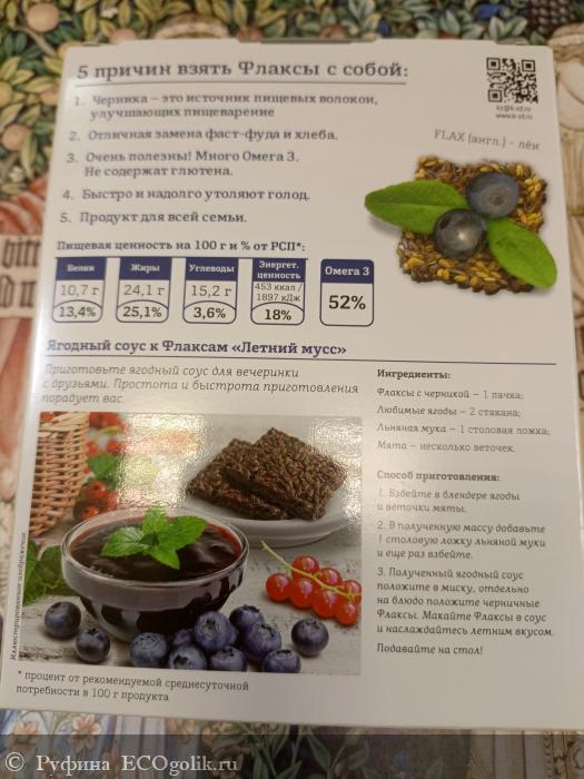 - Вкус: Доминирует натуральный льняной, слегка ореховый. Черника добавляет легкую кисло-сладкую ноту и визуальные точки, не перебивая основу. Сладость от фруктозы минимальна, не навязчива.