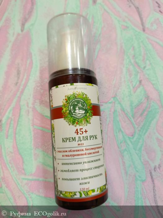 Крем для рук 45+ от «Дары Природы» у меня живёт уже, наверное, год. И это тот случай, когда я точно знаю — куплю снова. Во-первых, сам флакон. Он большой, пластиковый, с дозатором — 120 мл. Для меня это важно: не надо экономить, можно мазать и локти, и руки после каждого мытья, и даже мужу дать (он, кстати, тоже оценил). Хватает такого объёма месяца на три-четыре, хотя пользуюсь щедро.
