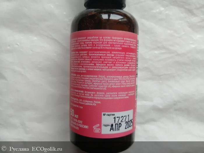 Он довольно ароматный по сравнению с другими натуральными дезодорантами от Сиберины. Скажем, стоит на порядок более сильного дезодоранта, насколько это возможно у натурального состава. Дезодорант "Лавандовое настроение" с цинком SIBERINA усилен тем самым цинком, потому и более сильный.