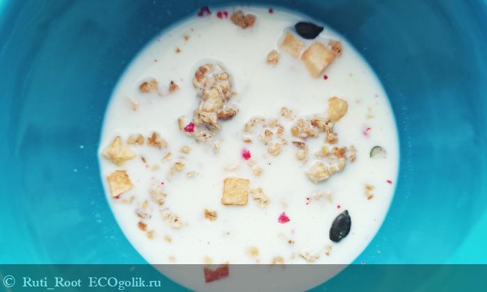 Я обычно заливаю гранолу молоком или йогуртом.