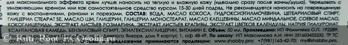 Порадовал меня полностью натуральный состав. Крем не оставляет аромата на теле, поэтому если использовать его в течение дня, то он не будет перебивать парфюм.