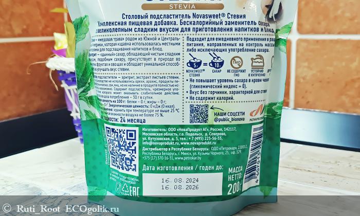 Самое главное, что он не придает странного привкуса. Вот действительно, словно чай пью с обычным сахаром, что мне нравится.