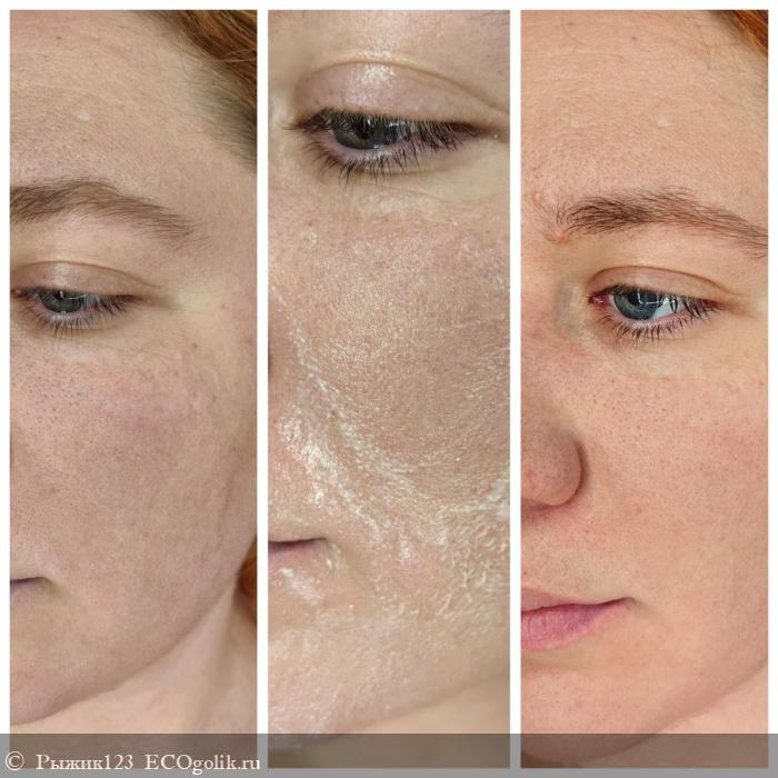 Очищение достаточно глубокое, но при этом не грубое, не травмирует кожу, в отличие от скраба. После применения кожа выглядит более свежий, тон лица становится ровнее. Удаляет загрязнения и остатки макияжа.