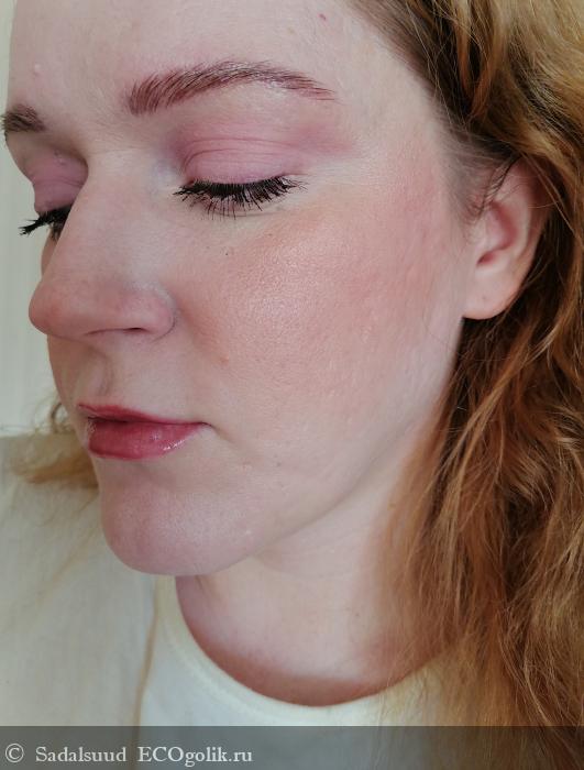 Давайте посмотрим действие спрея наглядно. вот на фото ниже я нанесла тональную основу в сухом формате. Видна небольшая перепудренность, хоть покрытие мне и нравится.