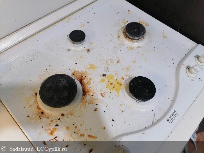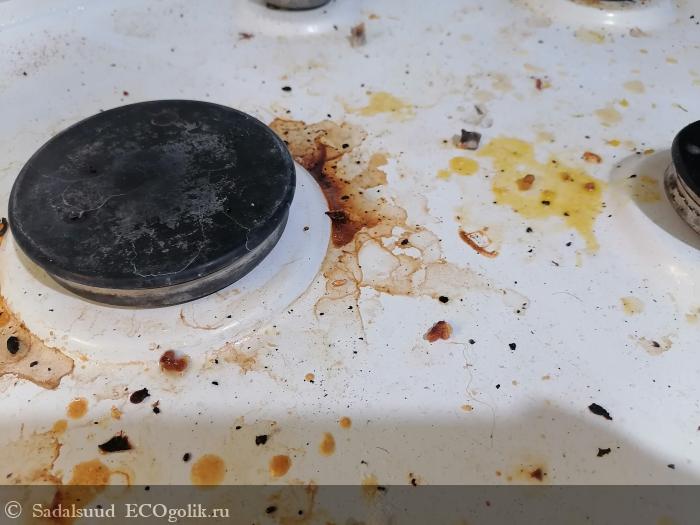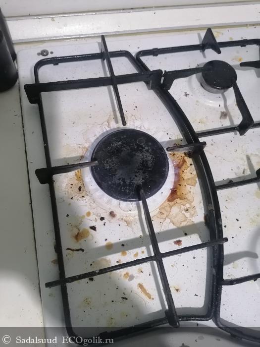 Результат супер. И это если учесть, что загрязнениям было недели 3, так что они успели довольно таки хорошо въесться в плиту.