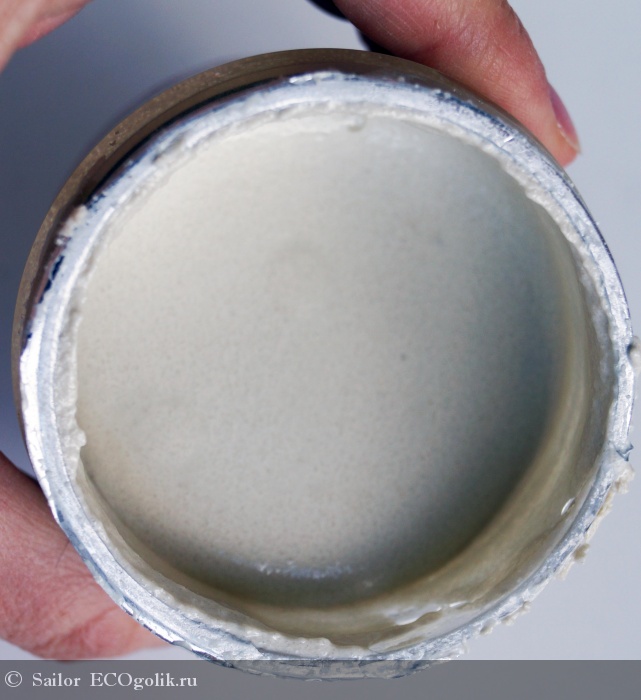 Баночка из пластика, который предназначен для хранения пищевой продукции. Не знаю как вас, а меня радует этот пункт. МилаМило даже упаковку делает по максиму безопасной. Материал прозрачный, через него полностью видно содержимое: светло серая масса, немного пузырчатая.