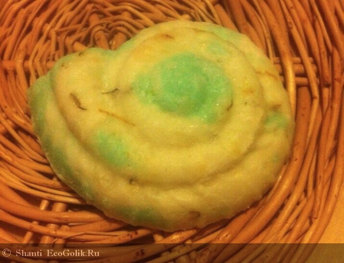 Я просто балдею от запаха, мыло не хочется выпускть из рук. Вот и сейчас достала эту ракушку, чтобы сделать фотографию и периодически нюхаю, чувствуются еле уловимые нотки можжевельника и календулы и, скорее всего, грейпфрута. Все эти эфирные масла значатся в составе, а календула еще и присутствует в виде лепестков. Представляете какой нежный тонкий аромат? Я же говорю - балдею!