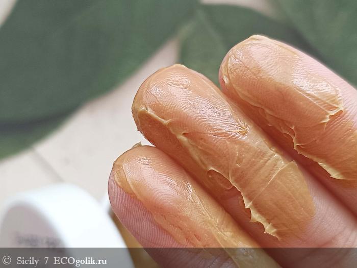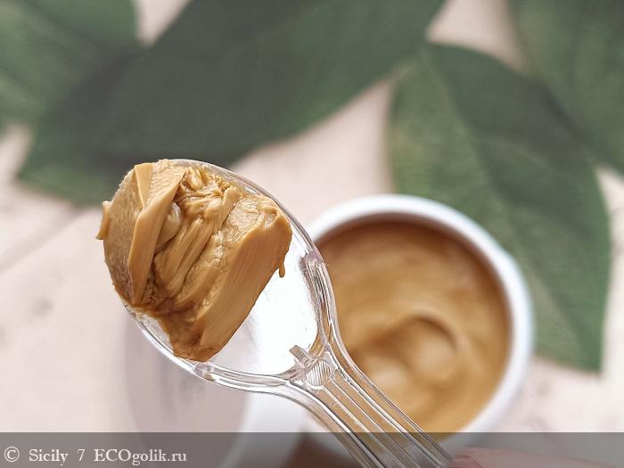 Сама маска светло-коричневого цвета. На вид напоминает варёную сгущёнку.