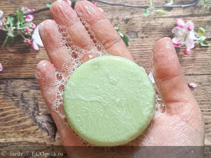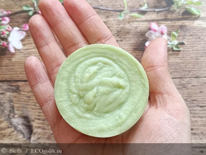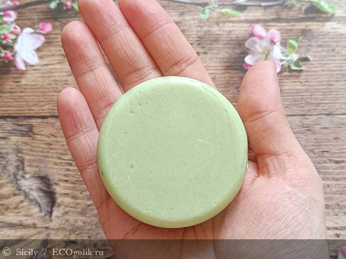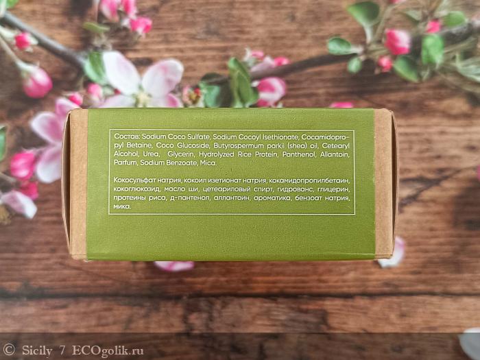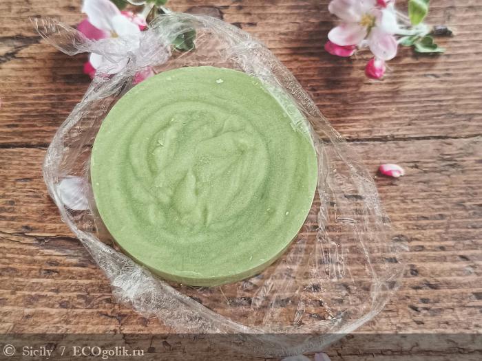 Во время размыливания брусок источает тонкий свеже-зеленый аромат, который остаётся на коже лёгким деликатным шлейфом.