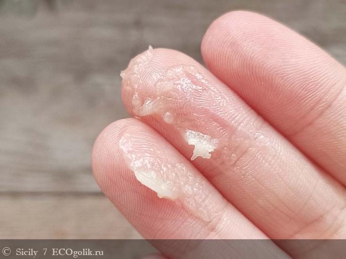 Бальзам охотно набирается пальцем и легко распределяется, оставляя после себя умеренную маслянистость.