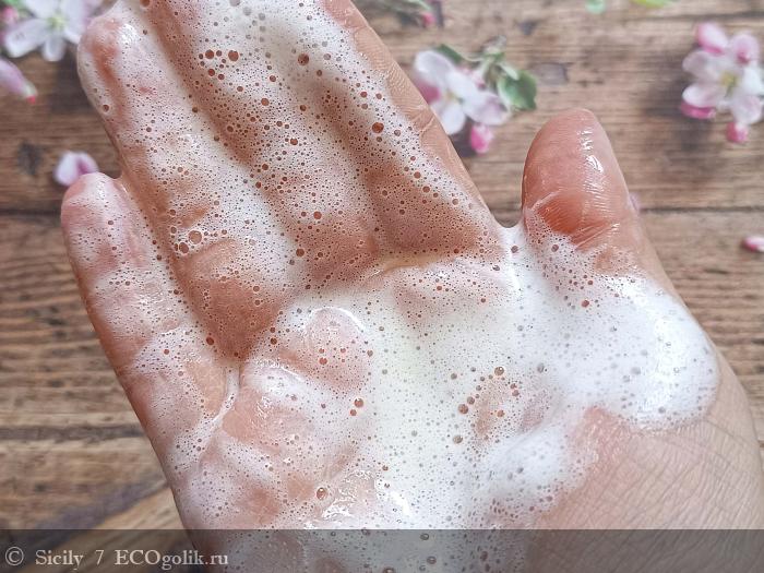Пенообразование у геля очень лёгкое, но это никак не влияет на его очищающие свойства.
