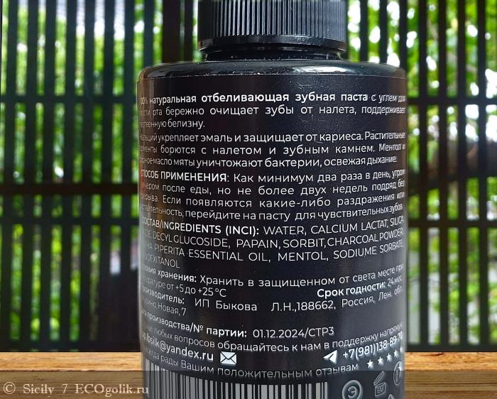 Sicily 7: Черная зубная паста с бодрящим мятным вкусом для эффективного и безопасного отбеливания.