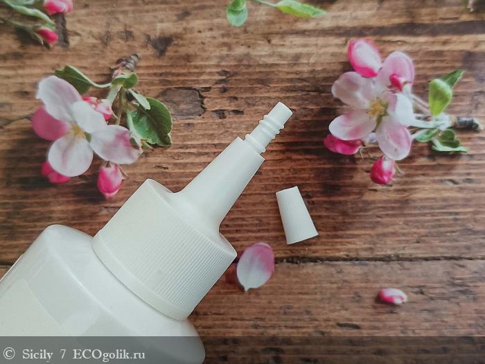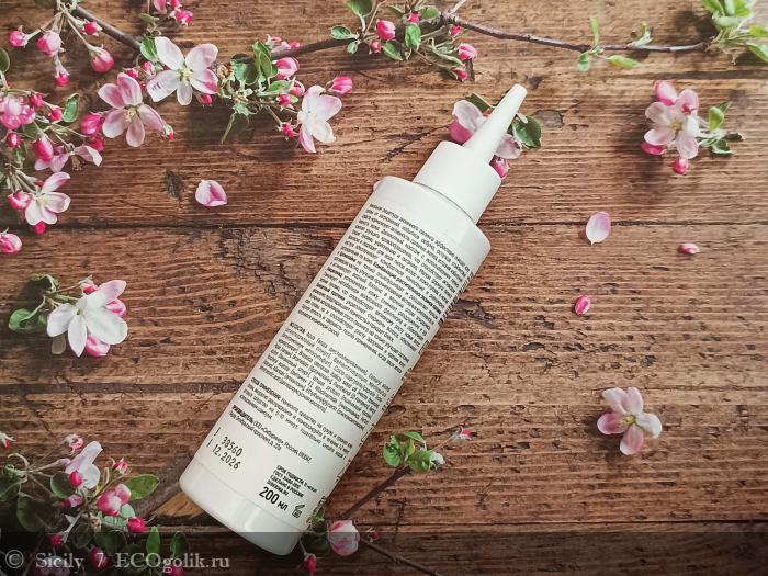У флакона удобный носик-дозатор, через который легко наносить пилинг по проборам.