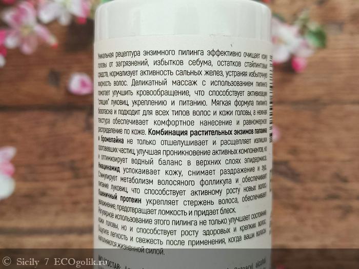 Sicily 7: Деликатный энзимный пилинг для кожи головы на основе растительных энзимов папаина и бромелайна. Подойдет не только обладателям жирных волос, но и тем, кто увлекается стайлингом.
