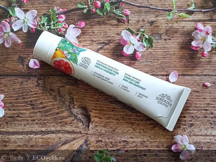 Эти качества делают зубную пасту "Мята и грейпфрут" отличным вариантом на каждый день. Так что если вы устали от сладких фруктовых паст или через чур мятных вариантов и ищете просто хорошую зубную пасту, то рекомендую обратить внимание на зубную пасту комплексный уход "Мята и грейпфрут" от бренда Siberina.