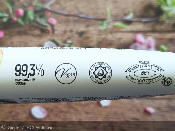 Сбоку тубы есть значки, указывающие на то, что паста веганская и не тестируется на животных.