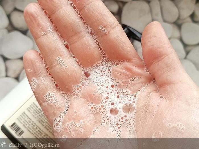 Смывает очень легко, не оставляя после себя скользкой пленки и ощущения недомытости.