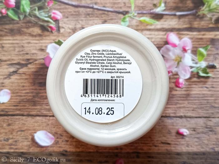 очищенная вода, глина косметическая, оксид цинка, лактобактерии/ферментированный экстракт семян овса/ржи/пшеницы, масло сладкого миндаля, гидролизат гидрогенизированного крахмала, глицерил стеарат цитрат, цетиловый спирт, бензиловый спирт, ксантановая камедь
