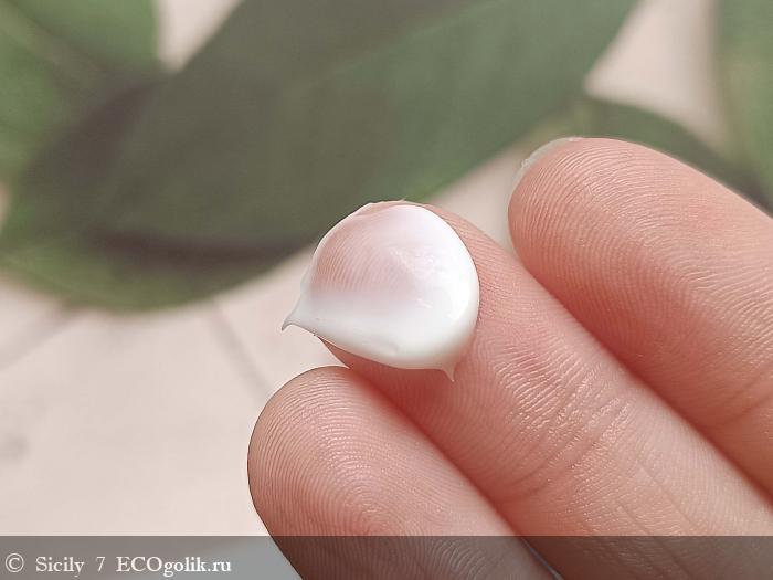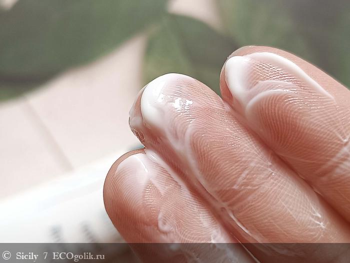 Благодаря комфортной текстуре крем без проблем распределяется по коже и довольно быстро впитывается, не оставляя после себя жирных следов.