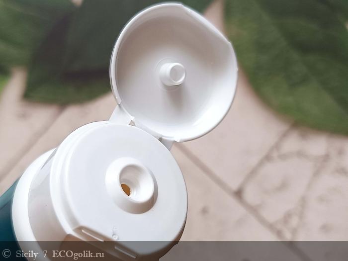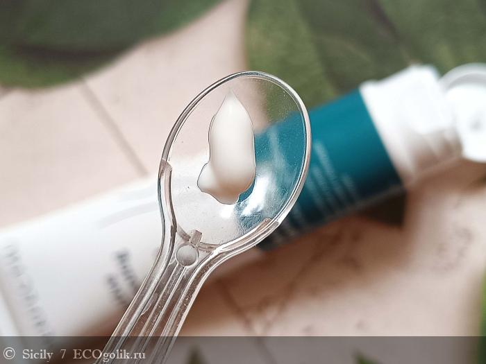 Крем выпускается в лаконичной пластиковой тубе, оформленной в бело-бирюзовых тонах.