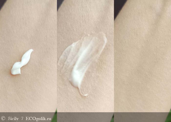 Он легко наносится, не полосит и почти моментально впитывается. Никакой пленки и липкого финиша на коже не оставляет.