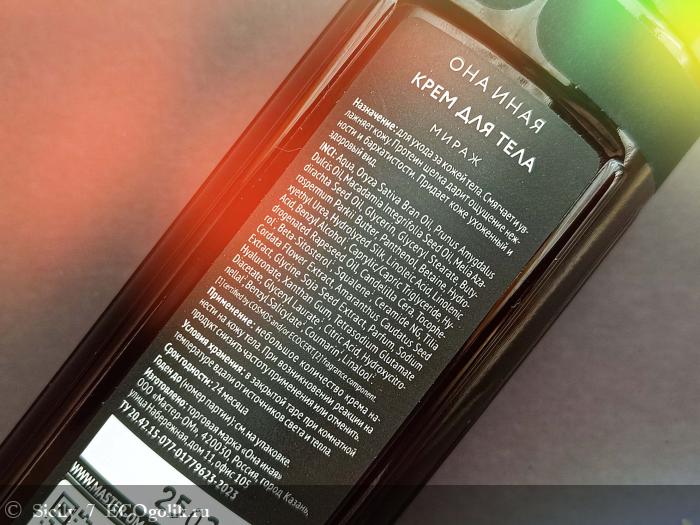 Если подвести итог, то крем для тела Она Иная & Sochi Fashion Week «Мираж» отвечает всем моим требованиям: он отлично справляться с сухостью кожи и при этом быстро впитываться, придавая коже ухоженный и здоровый вид. Кроме того, он не только выполняет функцию ухода за кожей, но и оставляет на ней приятный парфюмерный шлейф, который сохраняется на долгое время, что делает использование крема еще более привлекательным.