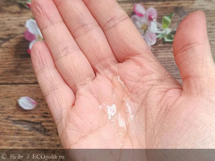 По консистенции гель не слишком жидкий, но и не густой, с лёгким желтоватыми оттенком.