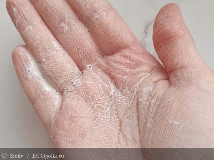 Она практически не пенится, превращаясь в нежное, кремовое молочко, которое легко распределяется по лицу.