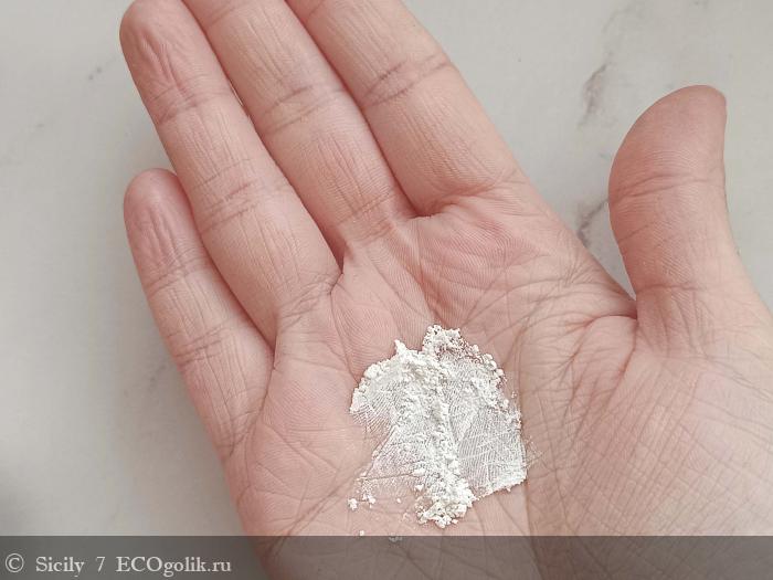 Сама пудра мелкодисперсная, без каких-либо грубых частиц.