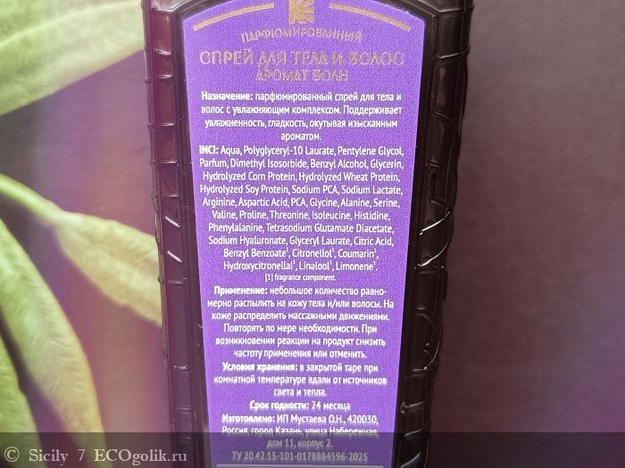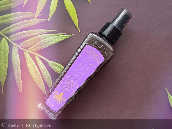 Sicily 7: Парфюмированный спрей для тела и волос с растительными протеинами и аминокислотами "Она Иная х Этерна" аромат дома Волн от Олеси Мустаевой.