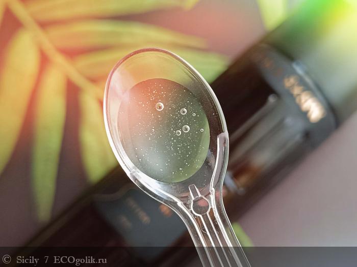 Шампунь не слишком жидкий, не растекается мгновенно по ладони.