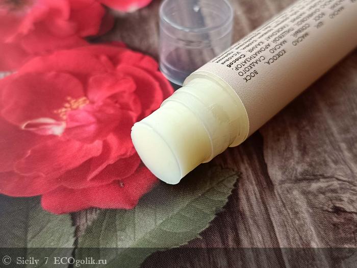 Бальзам увлажняет и питает губы без ощущения пленки и жирности, не создает липкости и не вызывает неприятных ощущений