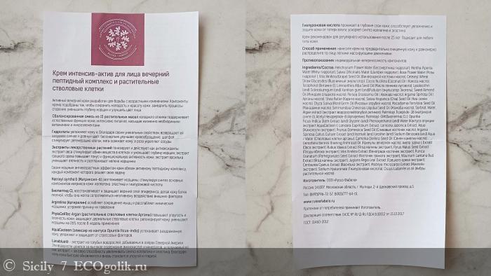 Сегодня на повестке дня крем интенсив-актив для лица Russo Fabelo вечерний пептидный комплекс и растительные стволовые клетки.