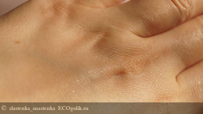 А спустя несколько часов, становится заметно, что крем нанесен на кожу.