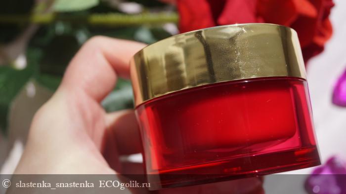 Золотая крышечка в сочетании с малиновым оттенком самой баночки выглядит дорого и богато.