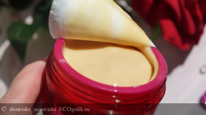 3) Крем немного ощутим на коже после нанесения, а утром, когда умываешься, то такое ощущение, что какая-то часть крема есть на лице и он смывается с кожи.