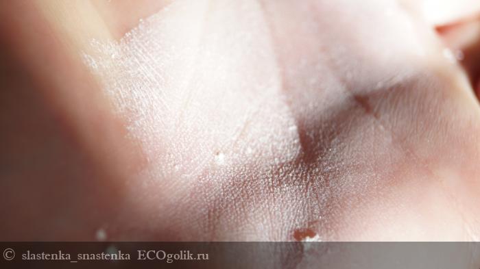 При нанесении на кожу распределяется не сразу, постепенно и какое - то время белит.