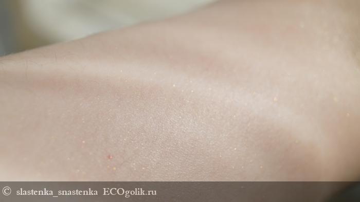 После полного впитывания, оставляет россыпь золотых частиц.