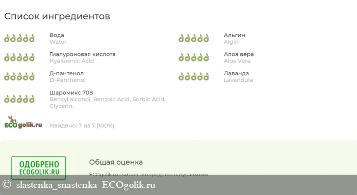 Производитель крупными буквами пишет, что маска без парабенов, искуственных красителей и ароматизаторов.