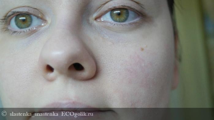 По истечению 15 минут и снятия маски, на лице появляются розоватые участки, где кожа чуть сухая.
