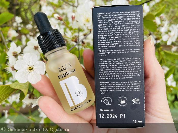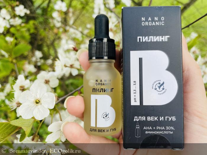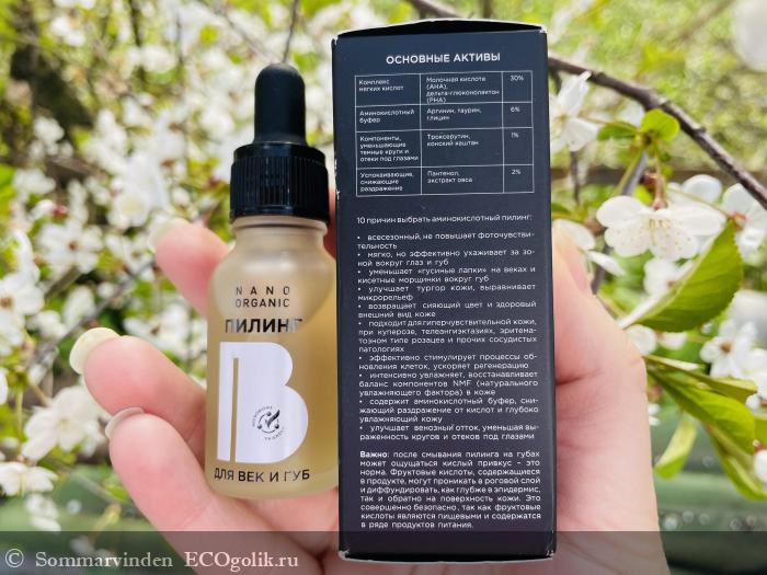 Я могу назвать себя опытным пользователем кислот, но такой пилинг, как этот, пробую впервые на свой страх и риск. Посудите сами: всю жизнь нам говорили, что кислоты на зону вокруг глаз наносить нельзя, и вот тебе поворот — Нано Органик представил пилинг для век и губ.