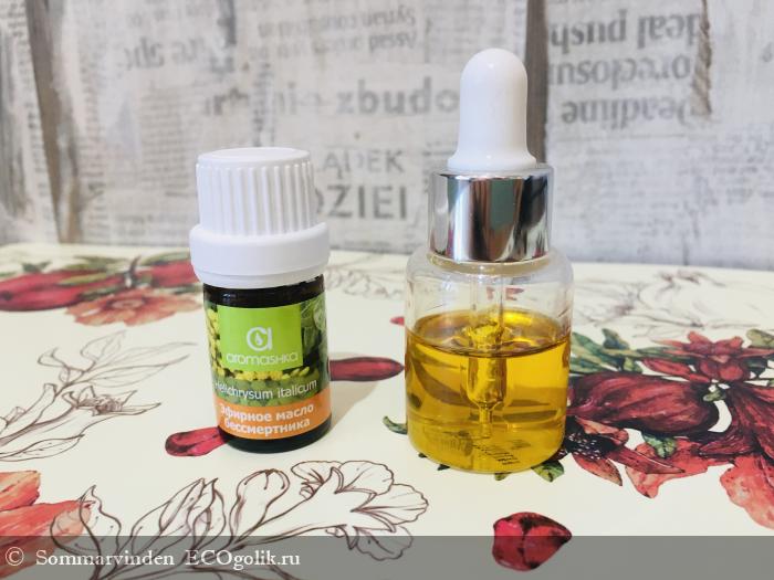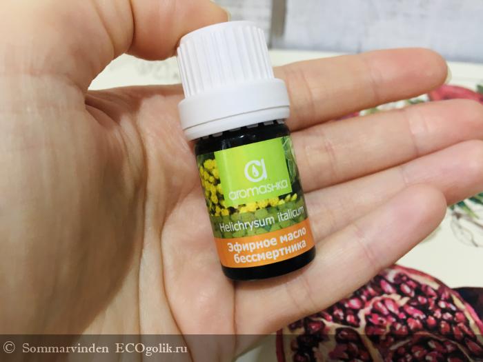 ЭМ бессмертника — это наиуниверсальнейшее ЭМ для антиэйдж-ухода. На сайте Аромашки всё расписано подробнейшим образом, я, естественно, не буду оттуда копировать труд составителей сайта, но вкратце упомяну основные свойства этого эфирного масла: