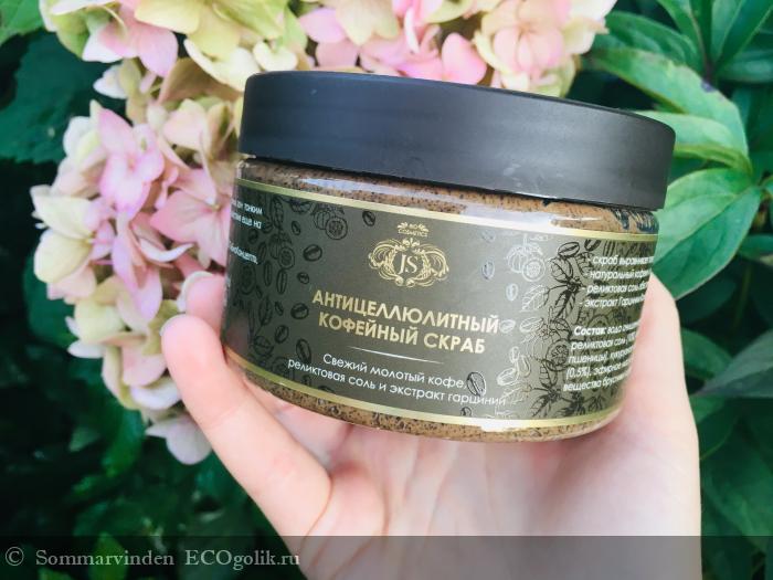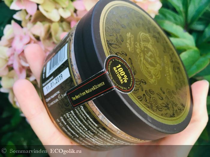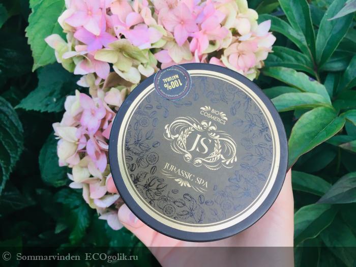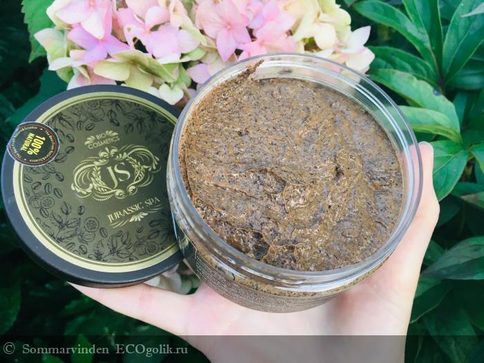 Это кофейный скраб от Jurassic Spa с антицеллюлитными активами: реликтовой солью, кофе и гарцинией.