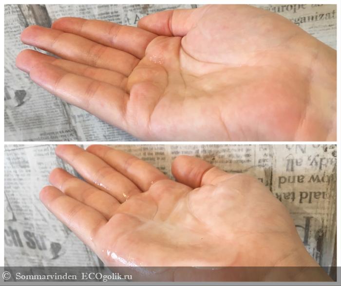 Масло абсолютно жидкое, что может быть непривычным. Лично мне даже удобнее распределять его по лицу, чем более тягучие масла типа розового от МОМ.