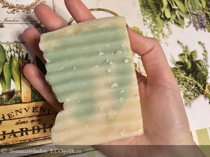Само мыло после освобождения от пластиковой защиты выглядит вот так. Довольно большой увесистый кусок рифлёного мыла с очень ярким ароматом липы.