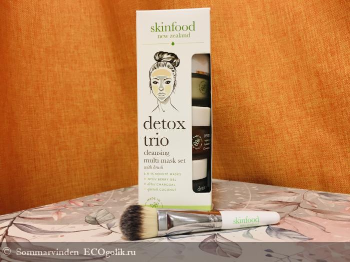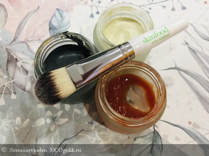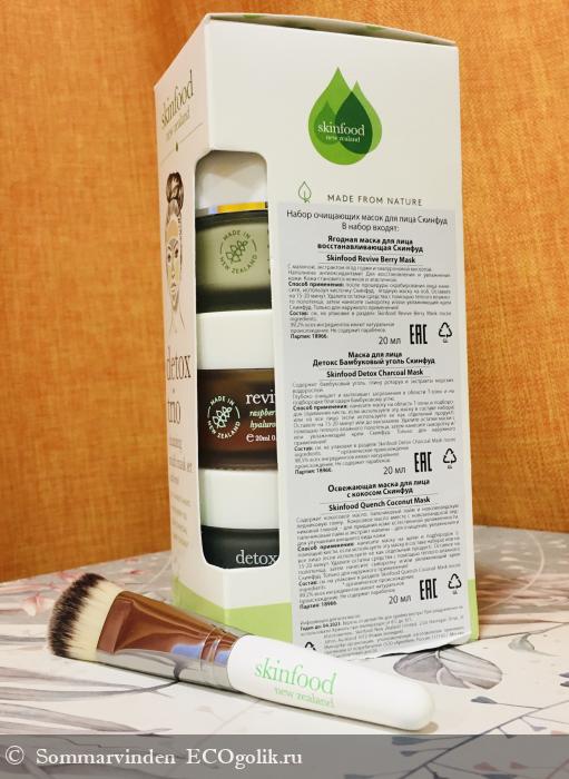 Зимой на скидках приобрела вот такой наборчик новой для меня марки из Новой Зеландии — Skinfood. Честно говоря, меня очень привлекла в нём скидка ... кисточка для нанесения масок.