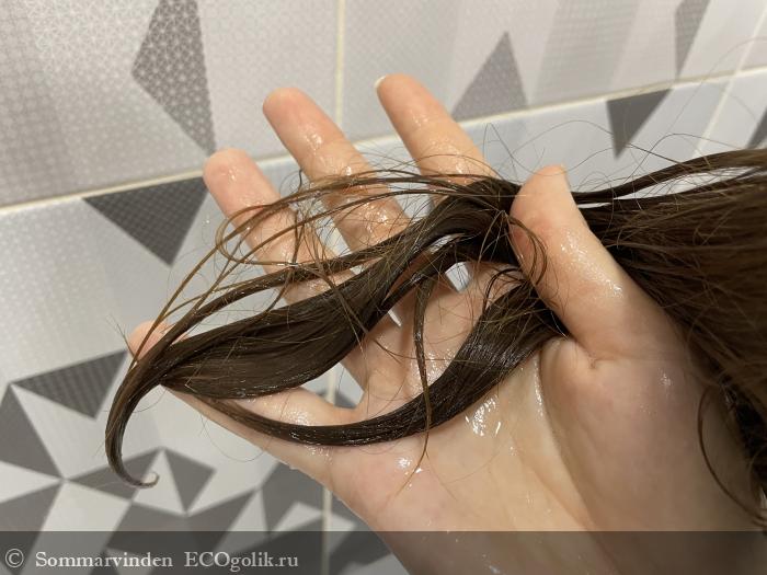 Вместе с тем при моей жутко жёсткой воде дома действия этого средства мне не всегда хватает. Иногда волосы всё же сложновато расчесать. Либо я их путаю в процессе мытья, либо кондиционера мне недостаточно. Либо жёсткая вода делает своё дело.