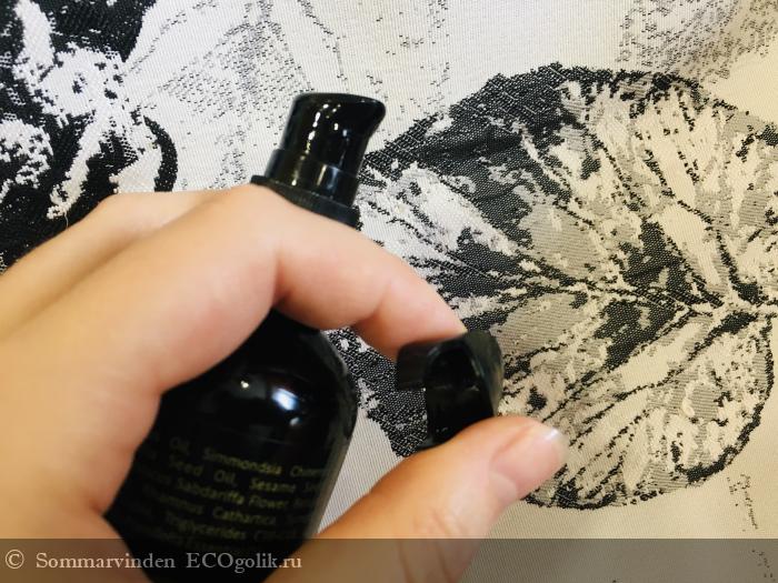 По сочетанию масел продукт обещал быть лёгковпитывающимся. Бузина, к тому же, — классный антиоксидант, гибискус и каму каму богаты витамином С, а жостер и окопник разглаживают и восстанавливают кожу.